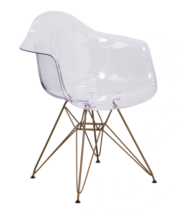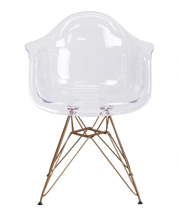 The Allure Reception Chair w/ Gold Frame is a stunning transparent reception chair with a stylish gold frame that is perfect for any salon or spa. This uniquely-designed reception chair is sure to add a pop of modern style to any salon reception area and your clients are sure to love it as well! This chair features a waterfall seat with curved arms to ensure comfort, reduce leg strain and improve blood flow. Its sleek fluid and contoured design is made from a poly-carbonate mold, and the adjustable floor glides make this a perfect addition to any salon or spa.