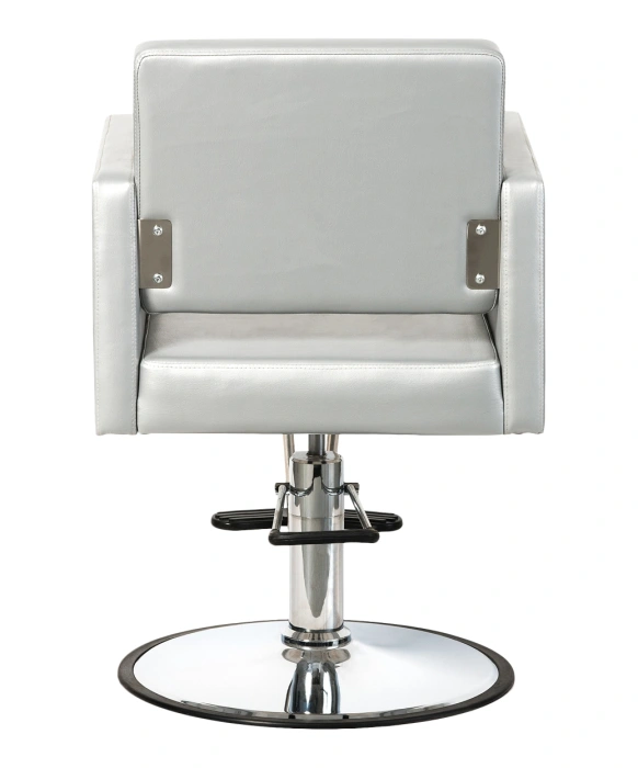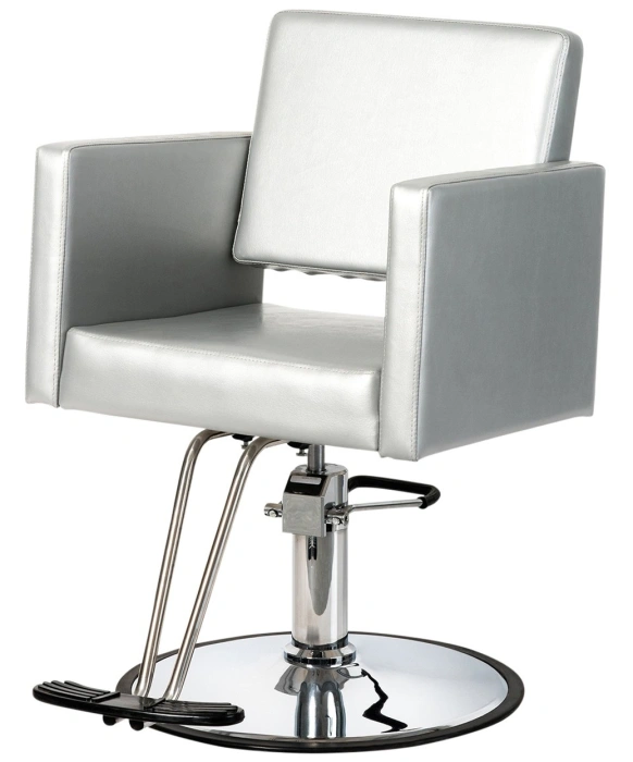 The Argento Styling Chair is a professional European-style square hydraulic styling chair, featuring a modern T-footrest. This styling chair features a wide seat and it is built on a heavy-duty frame that sits atop a chrome stainless round base. The Argento Styling Chair features a vibrant silver vinyl finish that is sure to impress and add a beautiful modern touch to any salon or spa. Bring a stylish modern look to your salon with this eye catching silver styling chair!
