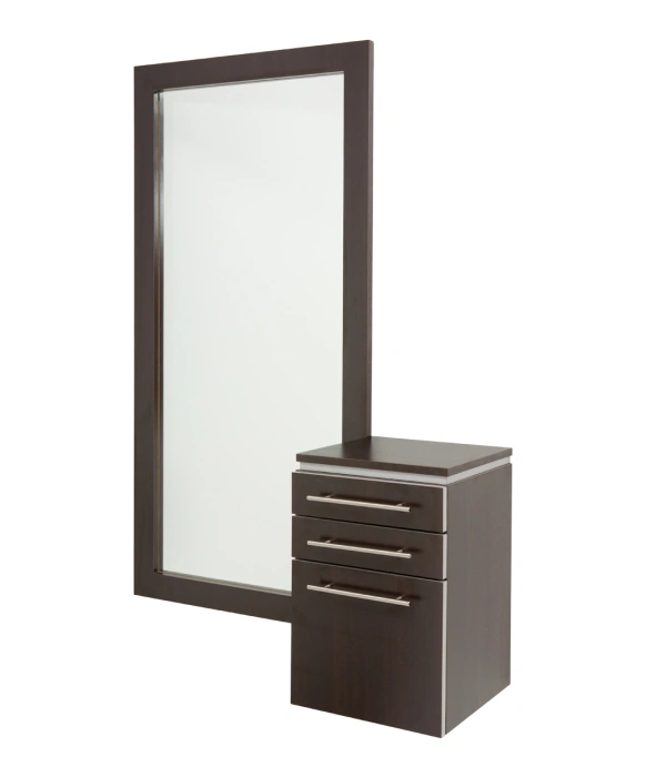 The Bali Hanger Styling Station & Mirror package includes the Bali Hanger Styling Station and the matching Iso Mirror for one great price. These items are 100% Made in the U.S.A. to enhance its quality while also supporting local Americans who share our passion for American craftsmanship. This styling station features a pull-out tool panel, pull-out breadboard, and scissor drawer all with full extension glides and luxurious 11" brushed metal handles. The matching Iso Mirror features a full length mirror and frame that works perfectly n American craftsmanship. The Bali Hanger Styling Station & Mirror Package is available in 20 popular laminates with any two-tone color combination. Please call (800) 447-6655 for color and customizing options.