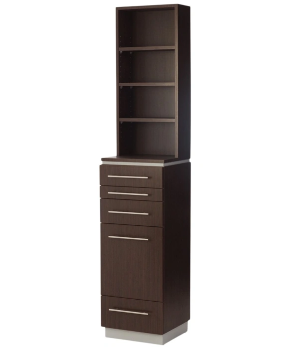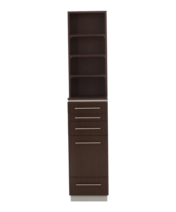 The Bali Tower Styling Station w/ Retail Display is 100% Made in the U.S.A. and is available in 20 popular laminates with any two-tone color combination. This freestanding salon station features (4) adjustable retail shelving outlets, a pull-out bread board for extra surface space, a compact scissor drawer, (2) utility drawers, as well as a pull-out appliance drawer. The pull-out appliance drawer comes standard with space to accommodate one blow dryer and two curling irons however, this can be customized by request. This styling station is quite versatile as it works well standing next to any mirror of your choice. The Bali Tower Station is also very easy to install as it ships in two fully assembled pieces and can be ready to use within minutes. The Bali Tower Styling Station w/ Retail is part of the Buy-Rite Bali Wood Collection and can be perfectly paired with the full length Iso Mirror & Frame for great continuity.
