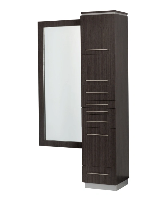 The Bali Tower Styling Station w/ Storage & Mirror includes the popular Bali Tower Station w/ Storage and the matching Iso Mirror & Frame for a discounted package price. These items are both 100% Made in the U.S.A. and they are available in 20 popular laminates with any two-tone color combination. The Bali Tower Styling Station w/ Storage features (2) upper storage cabinets, a pull out bread board for extra surface space, a compact scissor drawer, (3) lower utility drawers, as well as a pull-out appliance drawer. The pull-out appliance drawer comes standard with space to accommodate one blow dryer and two curling irons however, this can be customized by request. The Bali tower station is also very easy to install as it ships fully assembled and ready to use within minutes. The Iso Mirror & Frame features a full length mirror than measures 60" x 28" and a 3" frame around all sides. These two pieces work perfectly when paired together and are sure to give a refreshed look to any salon.