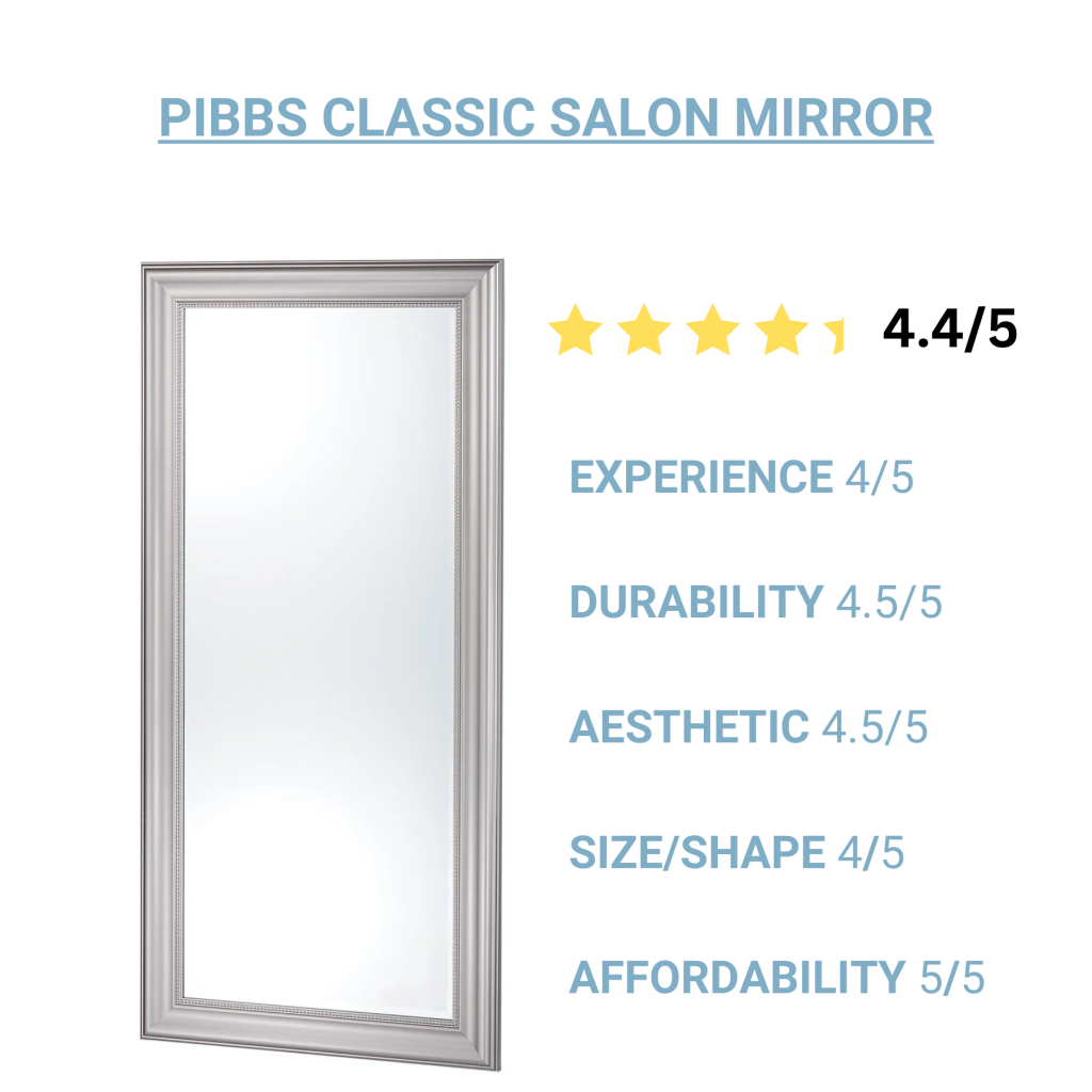 Why Stylists Love It: The Pibbs Classic Salon Mirror is the epitome of less is more. It has a classic design with subtle dotted edges on the frame for added elegance. It is full-length which allows clients the maximum reflective space possible. This salon mirror is also extremely versatile in that it can be used by itself or alongside any free-standing salon styling station to accompany it.