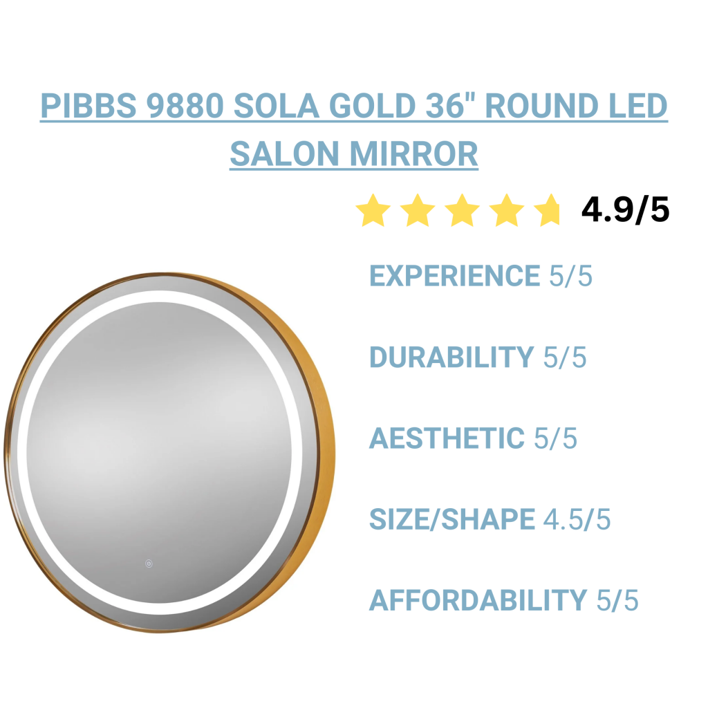 Why Stylists Love It: The Pibbs 9880 Sola Gold 36" Round LED Salon Mirror is a glamorous piece that elevates the look of any space with its integrated LED light illuminating any space it touches. It has a sophisticated gold frame with a sleek round design. The LED light is the highlight of this mirror. The light is dimmable to give off the right amount of light at any time of day.