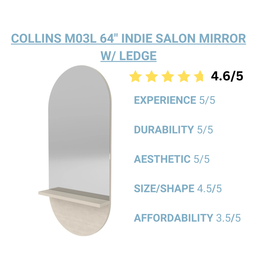 Considerations: This salon mirror comes at a higher price point due to the size and the built-in LED lights. If you are working with a tighter budget, consider one of our non-LED versions like our Collins M03 Indie Mirror.