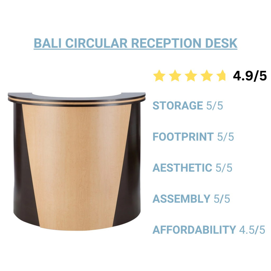 Shopper’s Tip: This reception desk is perfect for those looking for a trending rounded design with an integrated locking cash drawer that requires no assembly whatsoever. This reception desk for salons arrives fully assembled, which eliminates the hassle of assembly and ensures easy setup upon delivery. If a rounded style doesn't suit your taste, consider the Bali Square Reception Desk, which offers the same aesthetic and features in a rectangular shape.