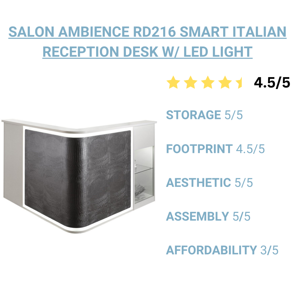 ■ Storage: We evaluated the storage capabilities—how much can the salon reception desk hold and organize?