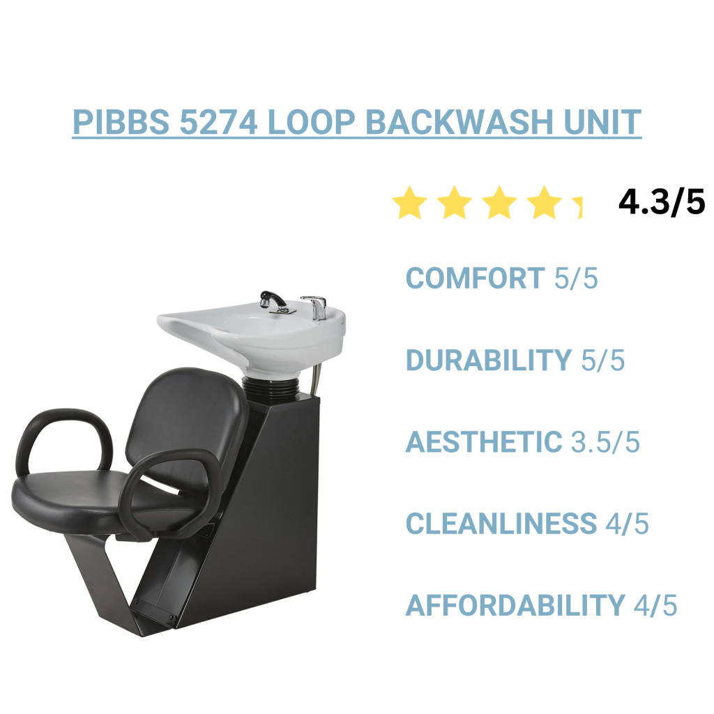 Why Stylists Love It: The Pibbs 5274W Loop Backwash Unit is sleek and small making it easy to fit into any space. It has many different color options to pair with either a white or black shampoo bowl. It has the smallest footprint of our backwash units without cutting down on durability or comfort.
