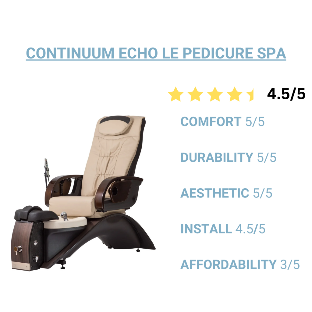 ■ Install: We evaluated how easy the chair is to install. How quickly can you begin offering pedicure services?