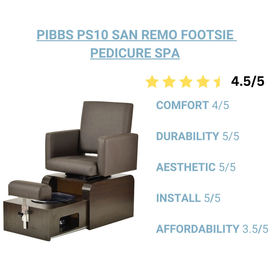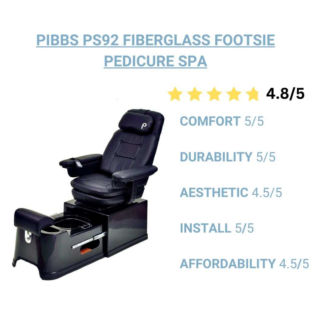 Considerations: This pedicure chair features a wood-based foundation design. When considering this aspect, it's worth comparing it to its sister unit, the Pibbs PS92 Fiberglass Footsiespa, which comes with a fiberglass base, offering a more traditional pedicure structure.