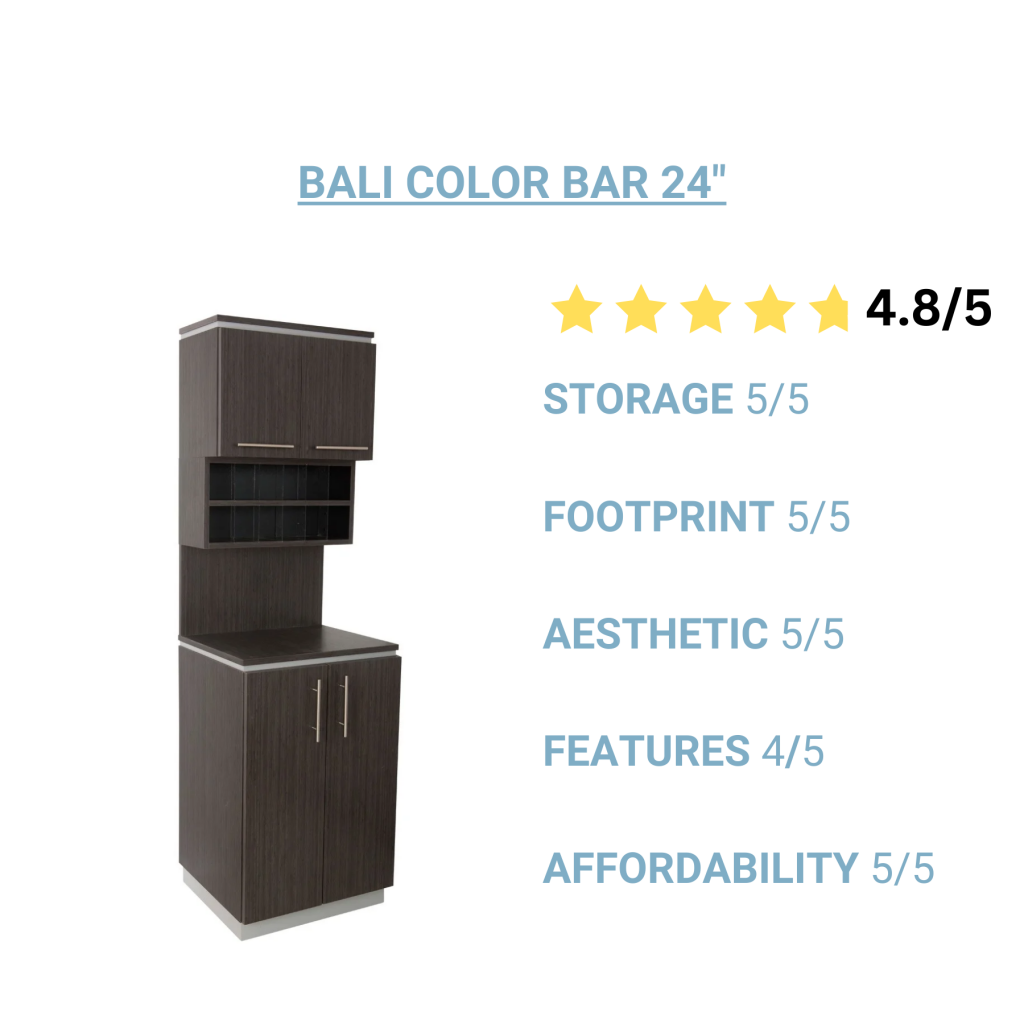 Buy-Rite Beauty offers a comprehensive selection of salon color bars designed to help stylists, colorists, and barbers maintain organization in a bustling salon environment. A salon color bar is a specialized workstation or area within a salon dedicated to hair coloring services. It typically includes storage for various hair coloring products such as dyes, bleaches, and developers, as well as tools like brushes and bowls. A typical color bar will have compartments or shelves designed to keep these products organized and easily accessible for stylists. It may also include a countertop for mixing colors and a sink to rinse bowls and utensils. it is different from a shampoo cabinet because it has specific storage for color products. We evaluated the entire collection based on critical grading criteria to present the top-ranked picks for 2024.