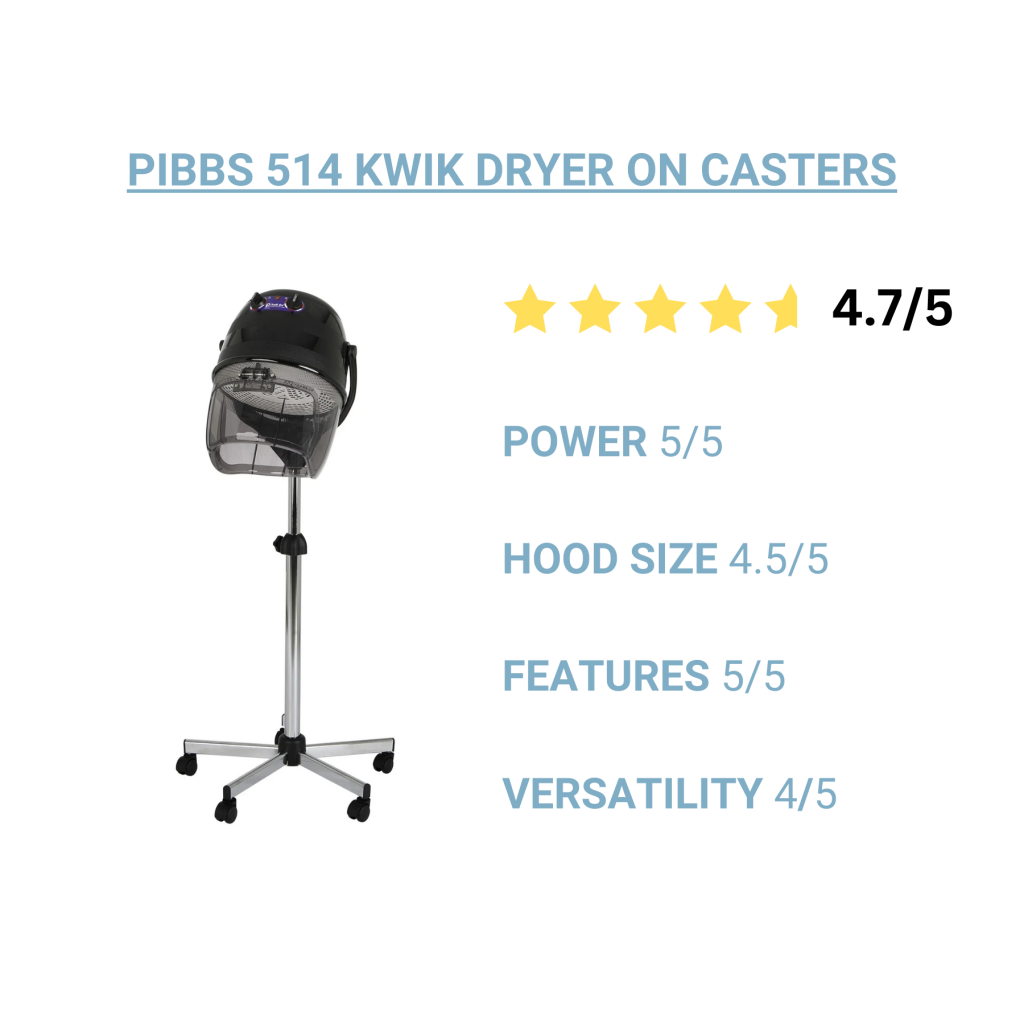 Considerations: This hooded dryer is built to fit perfectly into the back of a dryer chair for the ultimate client experience. Because of this, it is not on wheels making it harder to move around the salon. If you are looking for this dryer on wheels, consider the Pibbs 3200 Wheel & Handle Set.