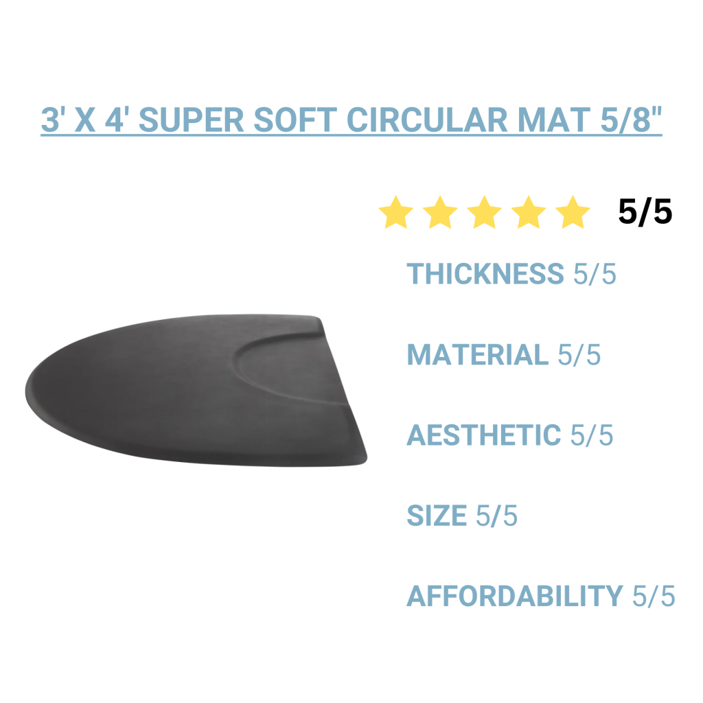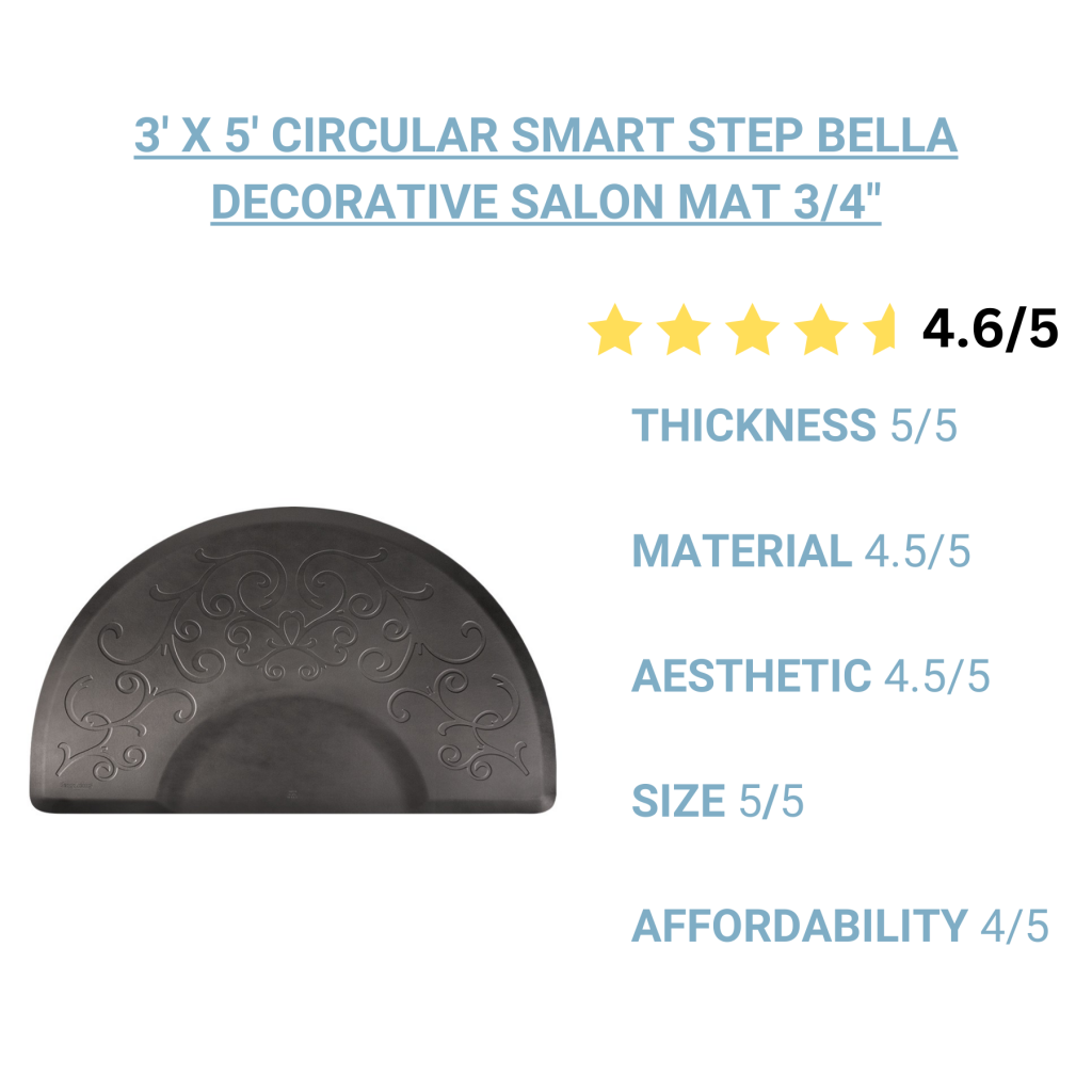 Considerations: Although many stylists prefer a 5/8" thickness, to find your optimal design, consider thicker mat options such as the 3'x4' Super Soft Circular Mat with a 1" thickness, providing even greater cushion support.