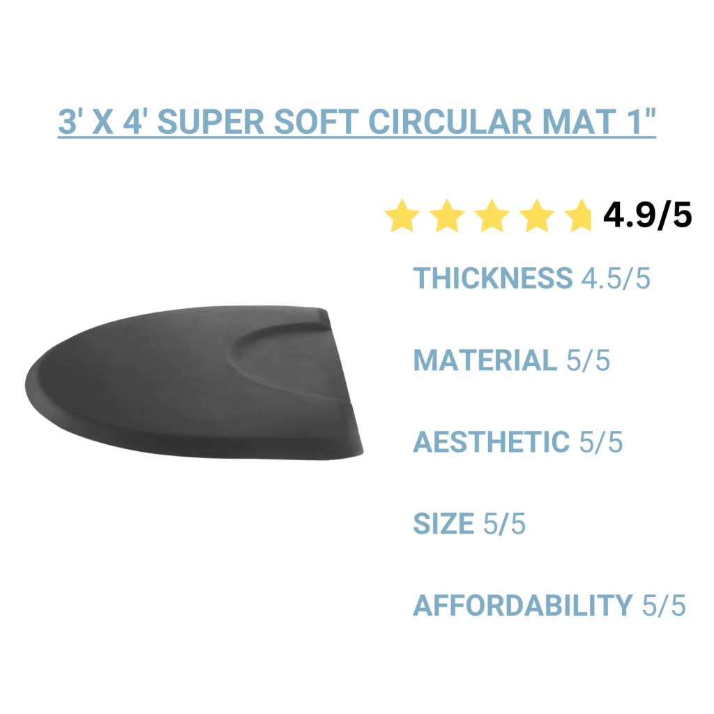Why Stylists Love It: The 3'X4' Super Soft Circular Mat 1" is the thickest mat available to provide the ultimate comfort for busy salon days. It adds even more padding to reduce leg strain and discomfort that stylists and barbers might feel. It is a generous 1" thick which also adds more protection to your floors from punctures and chemicals.