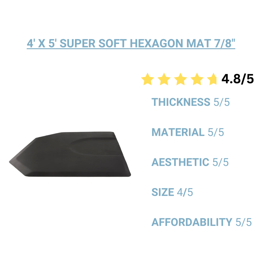 Why Stylists Love It: The 4'x5' Super Soft Hexagon Mat 7/8" is a large mat that offers extra space for stylists and barbers to move around the chair. It is ultra thick and comfortable to relieve fatigue and pain from standing all day. This extra-large salon mat has an indention to accommodate any barber or styling chair.