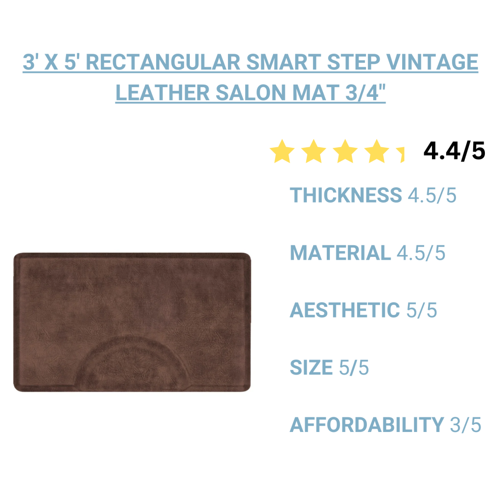 Why Stylists Love It: The Vintage Leather Salon Mat has a unique, subtle leather texture that adds a touch of luxury to any space. This designer salon mat has beveled edges that will never curl to keep your clients safe as they move through your space. It measures 3'X5' with a 3/4" thickness for leg and back relief throughout the day. It is stylish and functional to provide any space with a touch of sophistication.