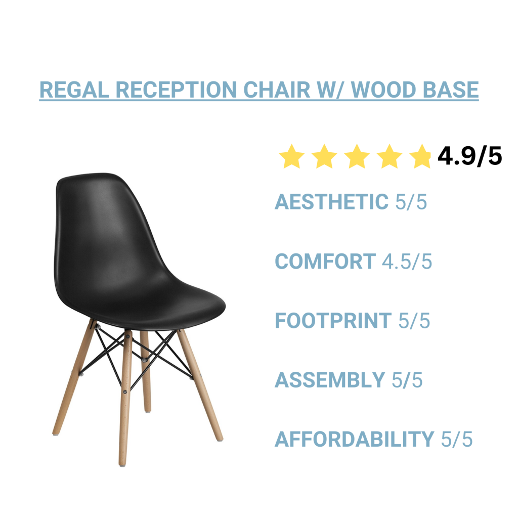 Why Stylists Love It: The Regal Reception Chair with Wood Base is sleek and simple without sacrificing value. It features a waterfall seat that reduces leg strain for long periods of sitting. It has a polypropylene molded structure and a stylish wood base that will withstand heavy use. It comes in seven vibrant color options to fit your desired aesthetic.