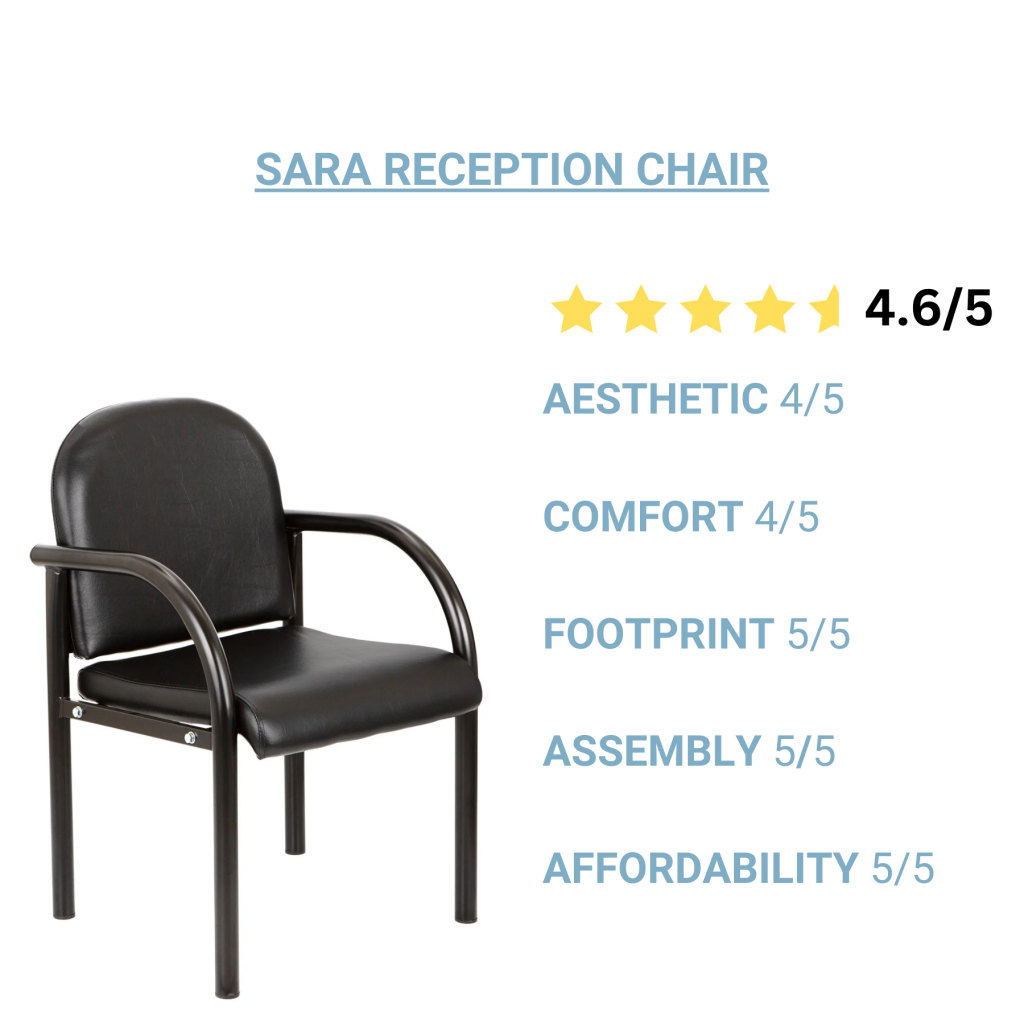Considerations: While this chair excels in affordability and functionality, its design options are limited as it is currently only available in black. For a similar waiting room chair with multiple color options, shop the Clarke Reception Chair w/ Wood Base that is available in 7 vibrant colors.