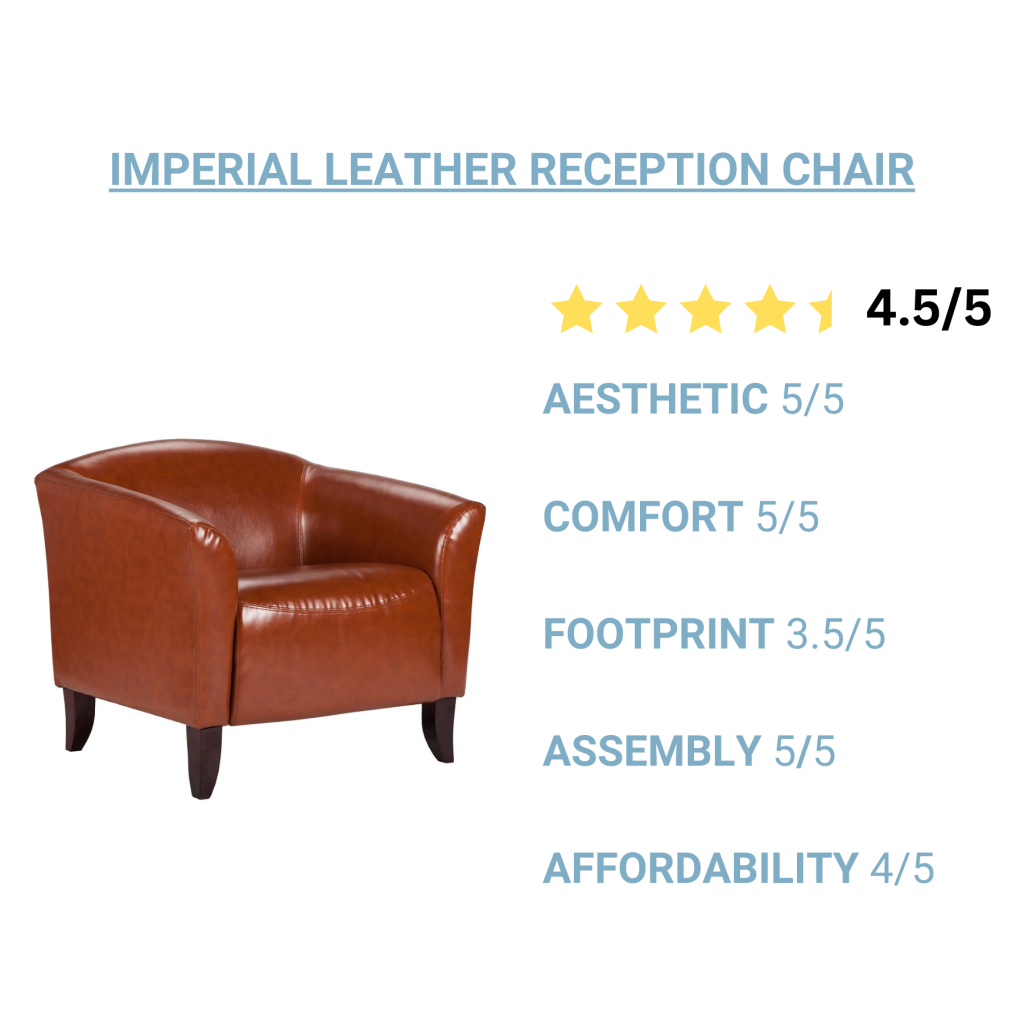 Why Stylists Love It: The Imperial Leather Reception Chair by Flash Furniture introduces this timeless armchair, adding a touch of style and class to any salon waiting area. This sturdy chair boasts hardwood construction and a 1.8 high-density foam cushion, complemented by LeatherSoft upholstery in your choice of five beautiful colors. With cherry-stained wood feet, a slightly curved seat and back, and sloping arms, the Imperial Reception Chair ensures guests are comfortable while they wait.