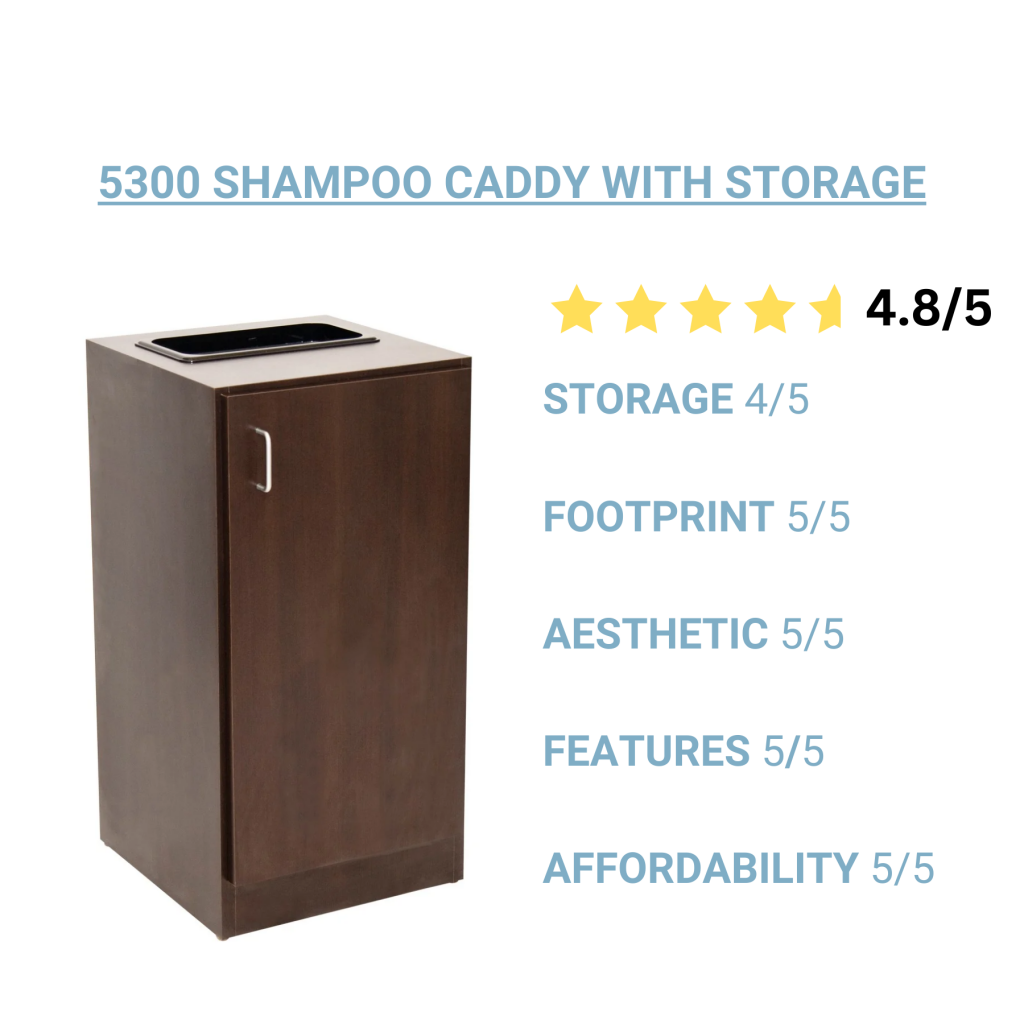 Why Stylists Love It: The 5300 Shampoo Caddy with Storage is economical with a great design. It is made of all wood in the USA and comes in 20 stunning colors. It has a built-in bottle well for shampoo bottles and the cabinet has an adjustable shelf for towels or color. Its small footprint makes it easy to work around and more versatile. Additionally, it ships fully assembled so you can set it up right out of the box.