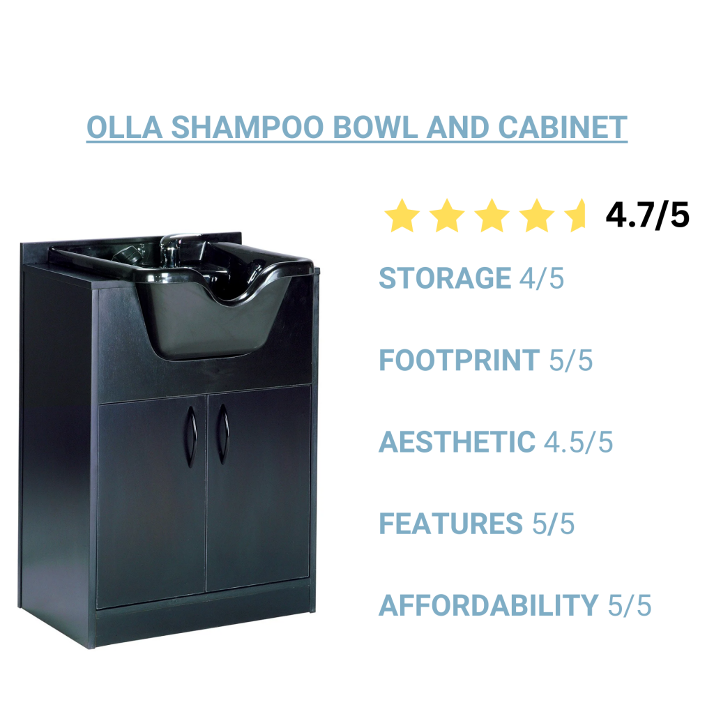 Why Stylists Love It: The Olla Shampoo Bowl and Cabinet has a streamlined design that keeps storage space handy during shampoo services. It has a basic and simple design that features a heavy-duty acrylic shampoo bowl and a freestanding wood cabinet. The wood cabinet is made specifically for this shampoo bowl and offers extra storage. The shampoo bowl comes with all needed hardware making it a great value.