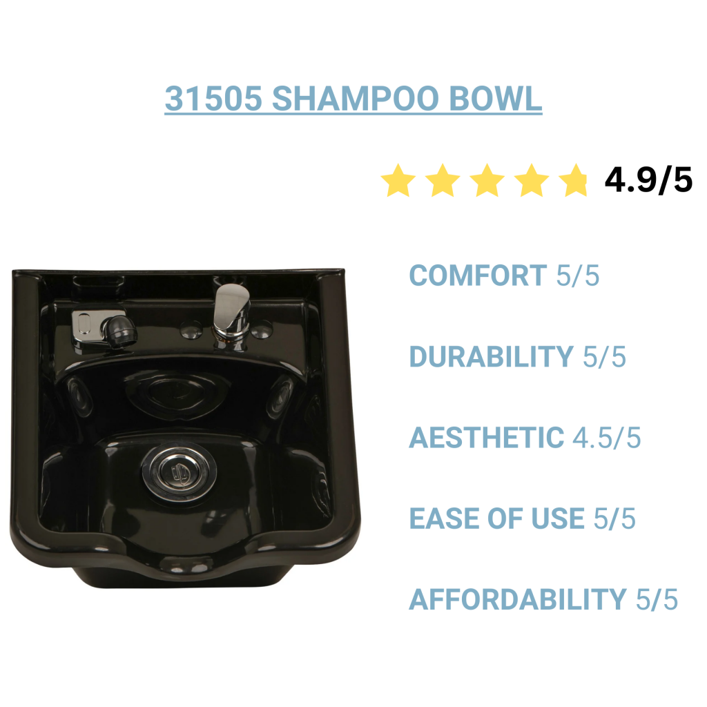 Why Stylists Love It: The 31505 Shampoo Bowl is our most versatile option for shampoo bowls. Its all-black look allows it to fit seamlessly into any salon or barbershop. It has a deep bowl with a hair trap to make cleanup much more efficient. This shampoo bowl is acrylic coated making it durable to withstand heavy use.