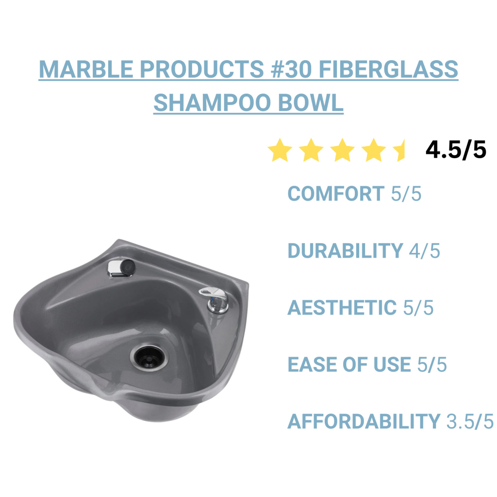 Why Stylists Love It: The Marble Products #30 Fiberglass Shampoo Bowl emphasizes stylist comfort because it offers an extra-wide shampooing area and a large 10-inch bowl. The fiberglass makes it very durable and lightweight. It comes in many additional color options making it one of the only shampoo bowls to have design flexibility.
