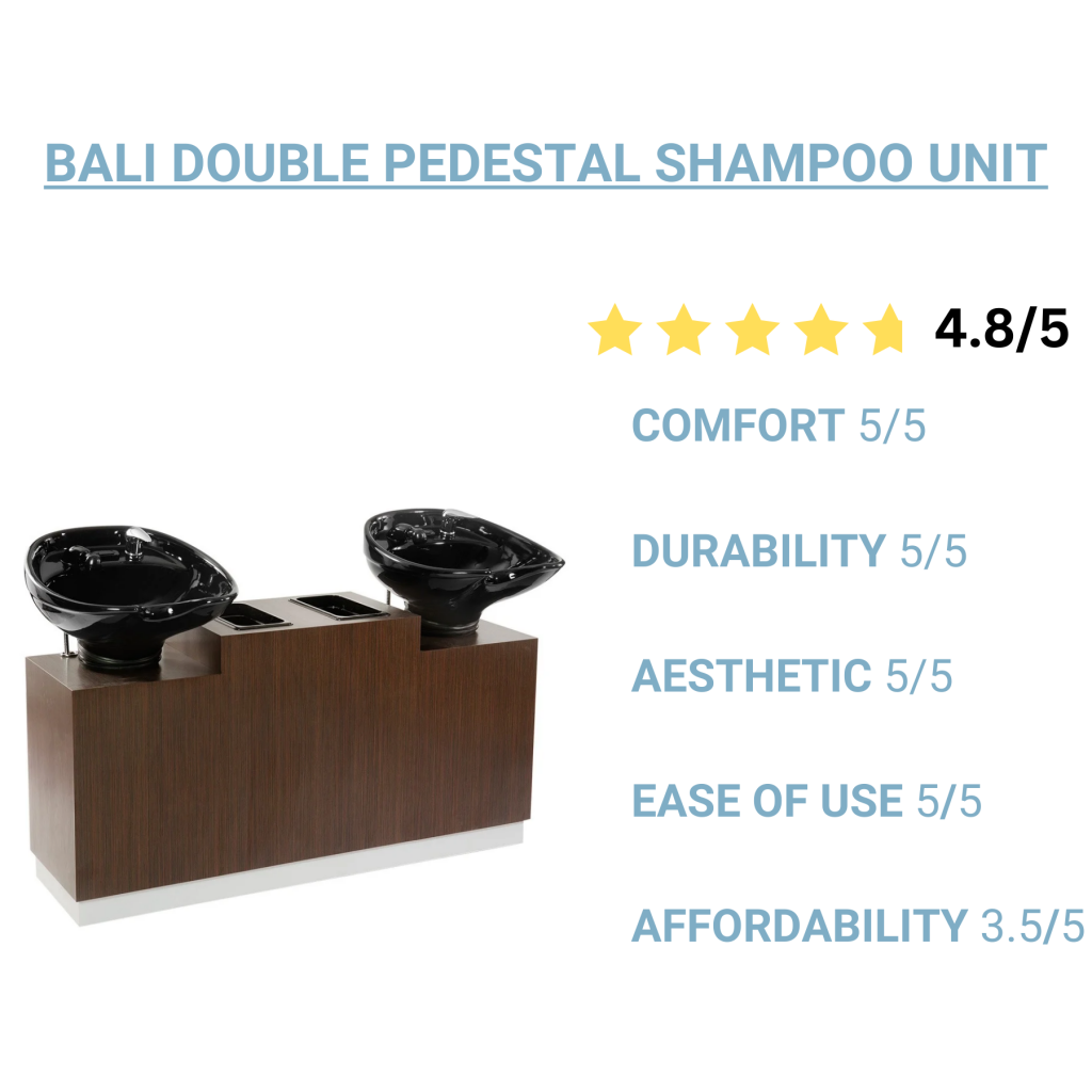 Considerations: Despite its efficiency and modern design, the double pedestal backwash may occupy more space compared to traditional shampoo bowls, making it less suitable for smaller salon environments.