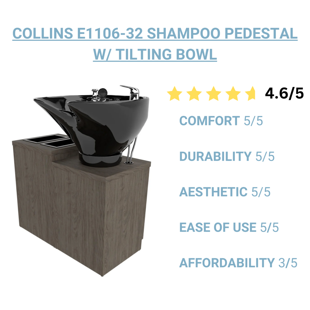 Why Stylists Love It: The Collins E1106-32 Shampoo Pedestal w/ Tilting Shampoo Bowl & Bottle Well Storage Cabinet is the best of the best in a shampoo pedestal. It comes with ample storage and a bottle well on top for maximum organization. It has a modern look with multiple color options to choose from. The shampoo bowl is made of porcelain to withstand the test of time and heavy use.