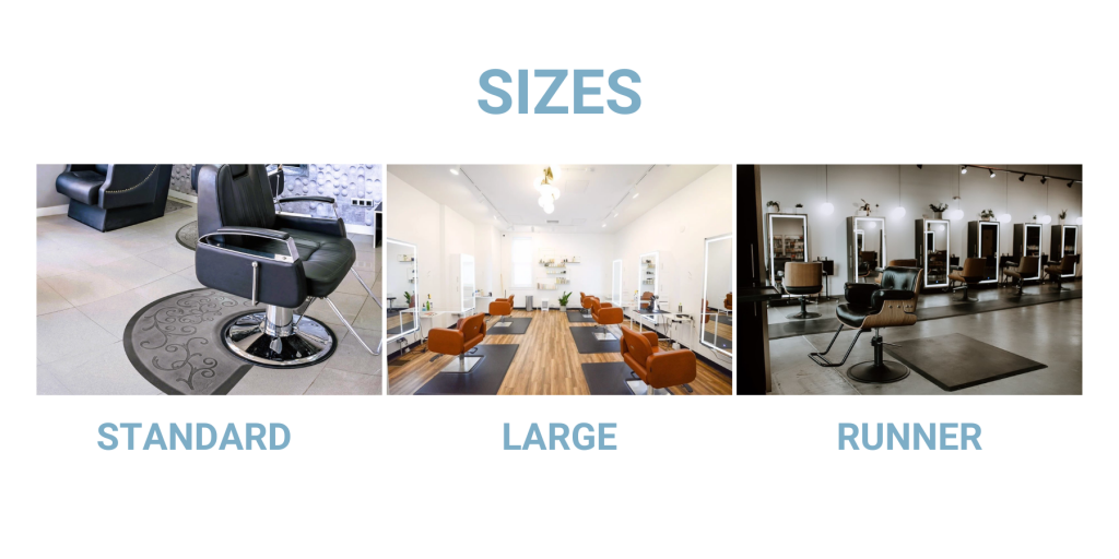 Compact Sizes: Smaller salon mats (3’ long or less) are ideal for stations with limited space. They provide targeted support around the chair area, ensuring that stylists can move freely without feeling cramped. Compact mats are convenient for single-chair stations or areas with minimal floor space.