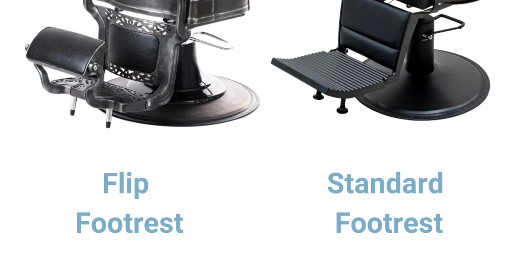 Barber chairs typically feature two main types of footrests: flip footrests and stationary footrests. Flip footrests as seen on the King Barber Chair, can be raised or "flipped" during reclining services, providing added comfort to the clients calf, making them ideal for services with longer recline times, such as shaving. In contrast, stationary footrests are fixed in place, offering greater stability but less flexibility for clients who prefer to adjust their footrest position during the service. Each type should be considered based on the specific services you offer, with flip footrests being particularly beneficial for extended reclining sessions.