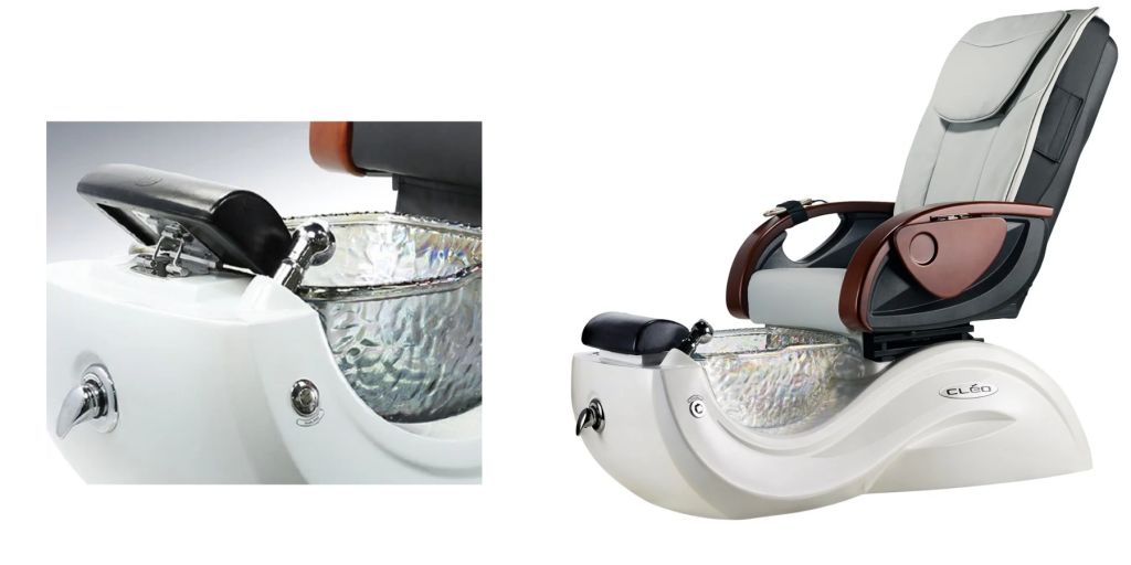This is the foundation on which the chair is built. It is typically made of sturdy materials such as wood, steel, or fiberglass-reinforced acrylic to provide stability and support for the chair and the client. The base of a pedicure chair may contain various components, including motors for adjusting the chair’s position, plumbing connections for the foot spa, and storage compartments for tools and supplies. Some pedicure chair bases are also equipped with wheels or casters for easy mobility.