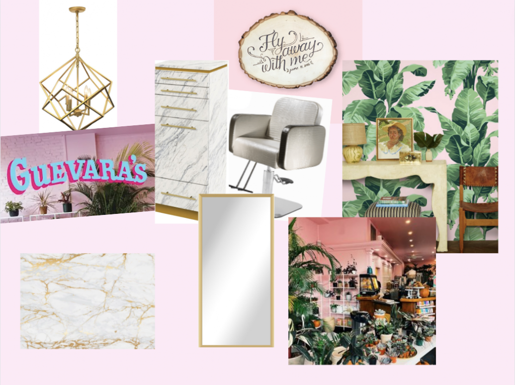 A finished board might look something like this. This creator has chosen pinks and greens as their focal colors, with lots of gold accents and natural elements in the wood and leafy green wallpaper. They also adhered to a “glam” style of equipment, with the Alexa Full Length Salon Mirror & Frame, Salon Ambience CH070 Icon Styling Chair in Vintage White, and a Bali Tall Gold Styling Station. Whether this is what the final product looks like or not, it’s a good illustration of the look this professional is going for!