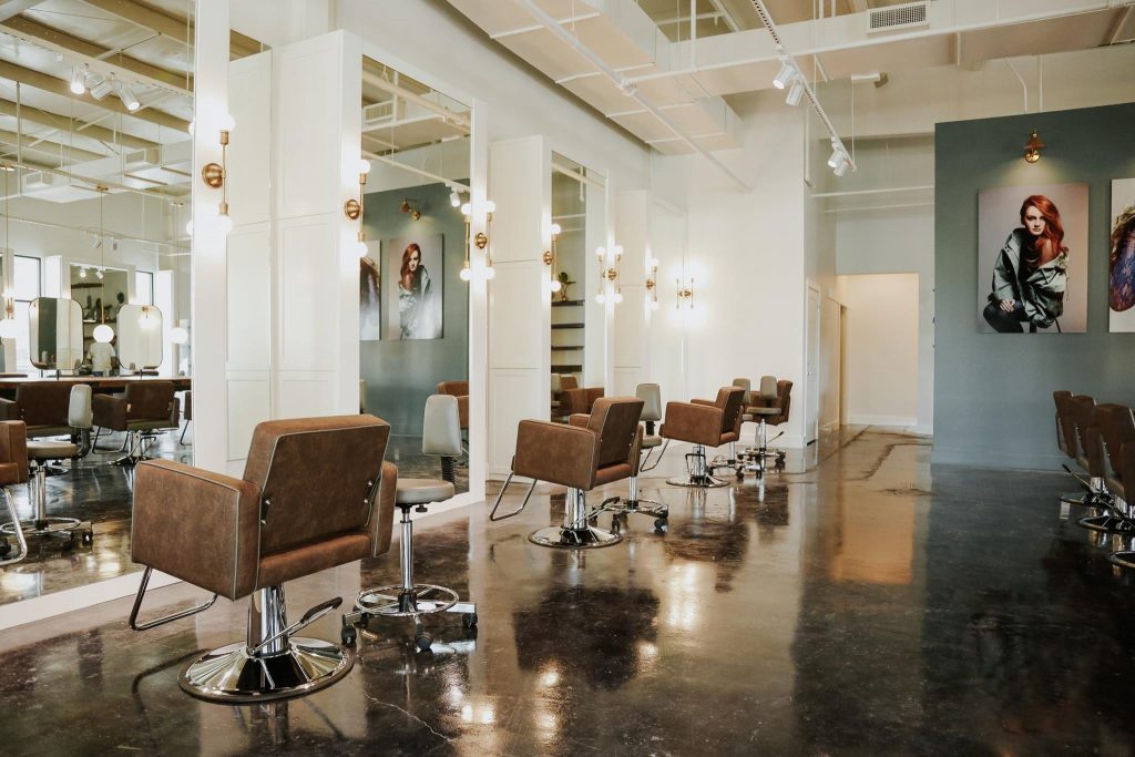 And as stylish as the space is, it’s also highly functional. Everything was designed with cleanliness and customers’ comfort in mind: salon stations were made to keep tools and products out of sight, and The Parlor House’s handcrafted color bar includes these comfortable Cosmo Styling Chairs – and charging stations, so they can stay in the loop during long treatments.