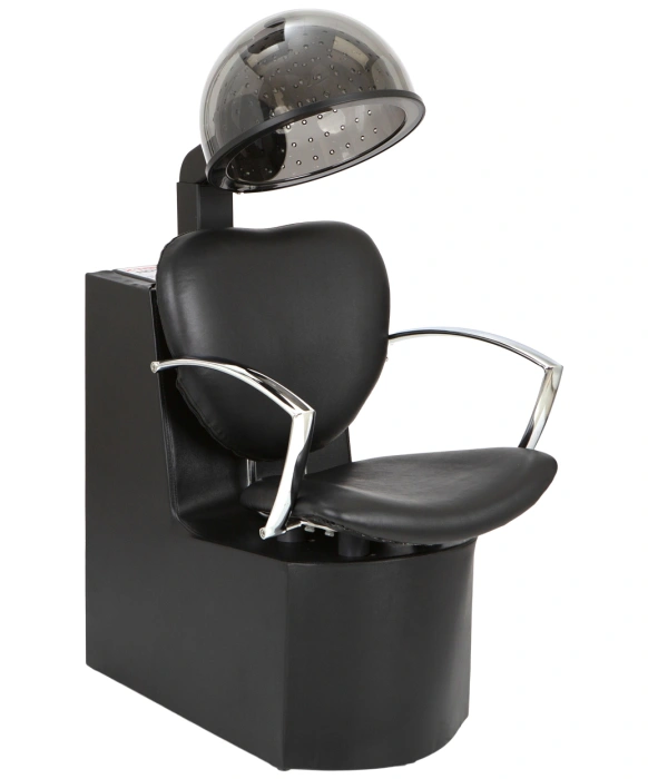 The Chea Dryer and Chair Combo includes a modern European design metal arm dryer chair with our #1 selling dryer in one unit. The dryer chair has a wood frame for great durability and an extra wide seat to fit your largest clients. The arms on the dryer chair are metal and bring a stylish look to any salon. The dryer slides easily into the back of the chair for easy use. There is no assembly required as this comes to you ready to use. The dryer is a 980-watt salon hair dryer Manufactured in the USA and complete with a timer and 4 setting temperature control. The dryer is UL and CSA approved and rated at 8 - 8.5 Amps. This unit is a perfect complement to the Sylvia Styling Chair.