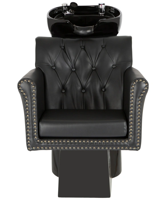 The Chelsea Backwash Unit is part of our “New York, New York” collection that presents a modern take on a classic style. The Chelsea’s tufted seat-back and exposed brass nail heads along the trim add an old-school glamour feel to any salon! This chair is also designed with a wide and tall seat-back and a soft foam-filled vinyl seat cushion to ensure your guests additional back & neck support while you shampoo. The seat cushion is also removable to make clean up between clients a breeze! This shampoo backwash unit comes complete with a tilting porcelain shampoo bowl with a European-style single handle faucet, shampoo hose, and a custom fitting neck rest for added comfort. For design & style continuity, we also carry the Chelsea Styling Chair and the Chelsea Dryer Chair!