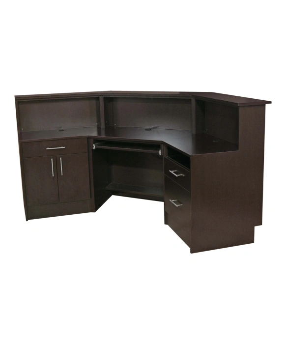 The Three-Sided Reception Desk w/ Back-Lit Panel by Collins is made 100% in the U.S.A, offering superior quality that is unmatched in the salon equipment industry. This custom reception desk will give your salon a unique look with its soft back-lit glow, and comes equipped with two drawers, a file drawer, keyboard tray, lower storage cabinet and an open cubbie for additional storage space.