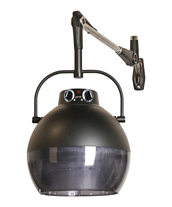 The 1433H Wall-Mounted TempTura Ultra Dryer by Collins offers great quality that is unmatched in the salon equipment industry. This down-draft hair dryer features an articulating wall-arm and oversized smoked hood. The TempTura works on 110 Volts, 1000 watts, and is designed to be mounted 78” from the floor. This dryer also features built-in variable time & temperature settings, 2-minute cool down cycle and does not require the use of a hairnet.