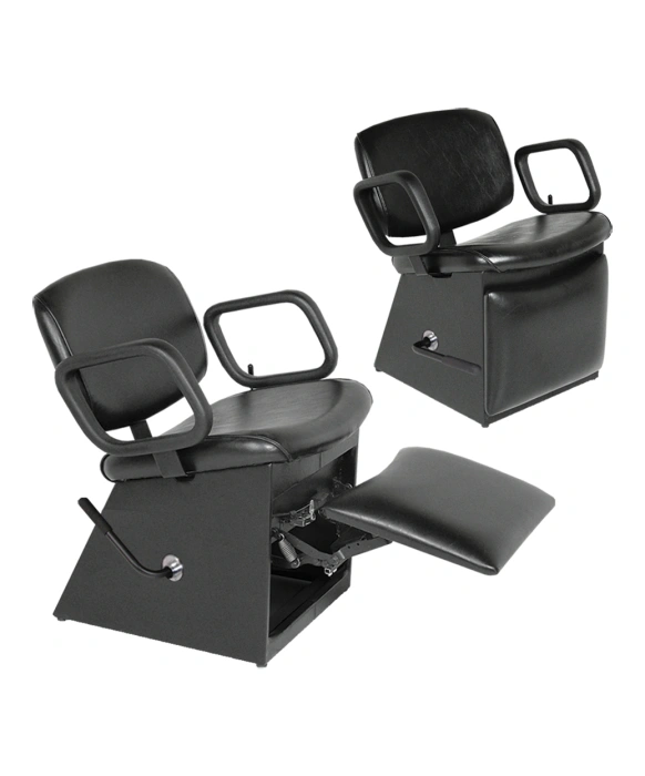 The QSE 1850L Shampoo Chair with Leg Rest by Collins is made 100% in the USA, and is built with comfort and functionality in mind. This lever-controlled shampoo chair features a reclining back with a locking kick-out leg rest, as well as padded and upholstered seat and back cushions to ensure guests’ utmost comfort while they shampoo! The 1850L includes an upholstered base, and the chair is available in your choice of more than 50 beautiful vinyl colors. *Please allow additional processing time for colors other than Black. *Please allow additional lead time for shipment of special upcharge vinyl.