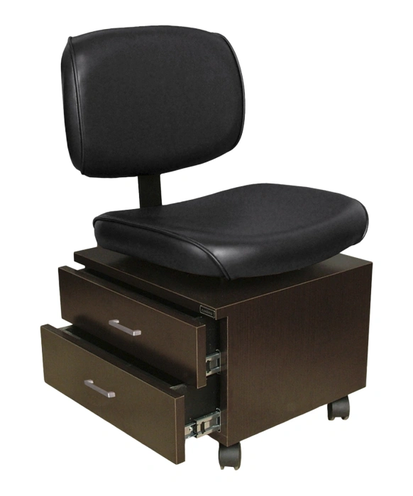 The Collins 2510 QSE Pedi-Stool is made 100% in the U.S.A, providing you with superior unmatched quality. The QSE Pedi-Stool features a comfortably padded upholstered seat and back for ultimate comfort and support. For extra convenience, the Pedi-stool provides plenty of storage room below the seat with 2 Full Extension Drawers. It also comes equipped with twin-wheel casters that allow for effortless mobility. The Collins QSE Pedi-Stool is customizable with a variety of Vinyl and Laminate Colors making it an easy fit for any salon or spa. *Please allow additional lead time for shipment of special upcharge vinyls and laminates.