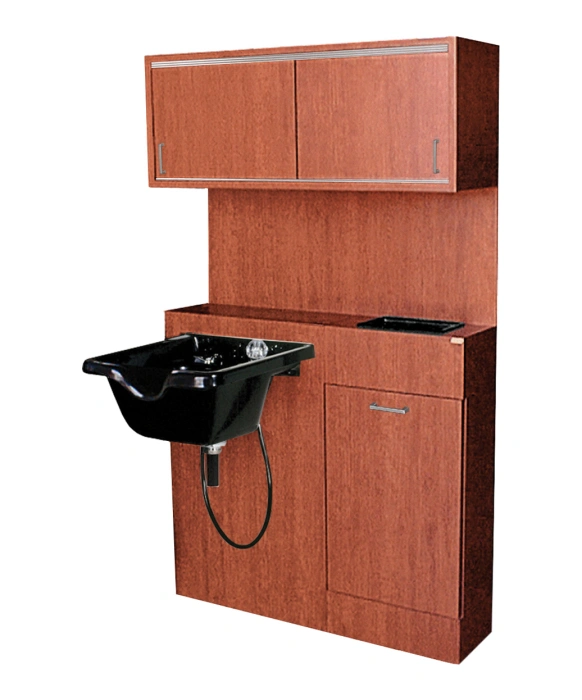 The QSE Shampoo Bulkhead by Collins is made 100% in the USA, guaranteeing you the upmost quality and craftsmanship in the salon equipment industry. This salon essential comes equipped with a 24” bulkhead surface for mounting a shampoo bowl, 42” upper cabinet with sliding doors for clean towel storage, and an 18” cabinet with a tilt-out soiled towel bin and molded bottle well. This station also features a full backsplash, and comes in your choice of over 50 laminate colors. *Pictured with CB19 Shampoo bowl which is sold separately & please allow additional lead time for shipment of special upcharge laminates.
