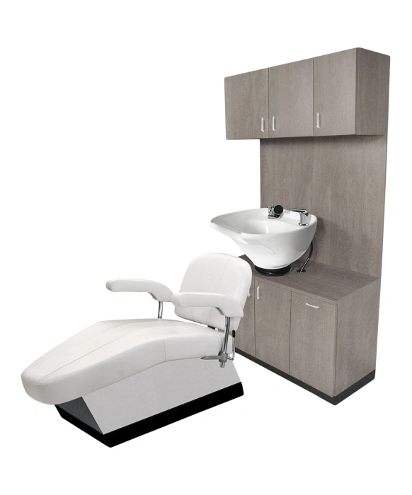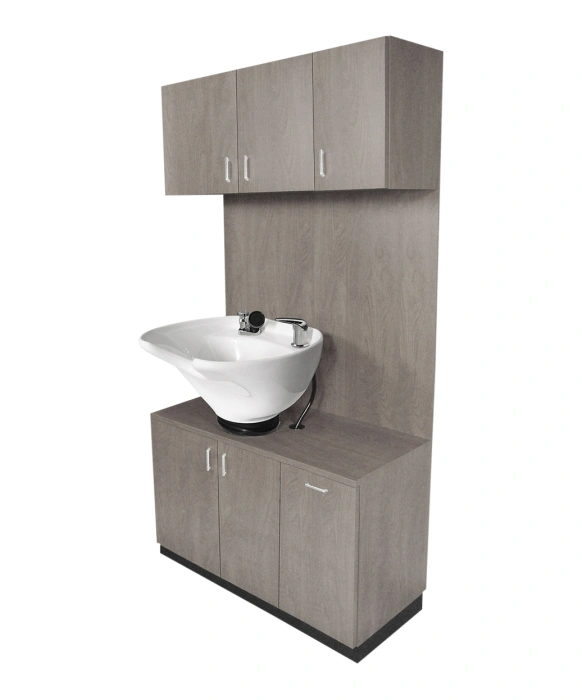 The Collins 638-42 TSB 42” Side-Wash Shampoo Station is made 100% in the U.S.A, offering superior quality that is unmatched in the salon equipment industry. The Side Wash Shampoo Station features a full width backsplash with a durable porcelain tilting bowl, sitting on top of a space-saving cabinet and storage. Store extra clean towels in the overhead towel cabinet and toss out your dirty towels with the tip-out soiled towel bin. Plenty of storage and convenience, all in one station. Personalize your station by choosing from over 40+ laminate colors. The Collins 638-42 TSB 42” Side-Wash Shampoo Station comes with a 1-year warranty.
