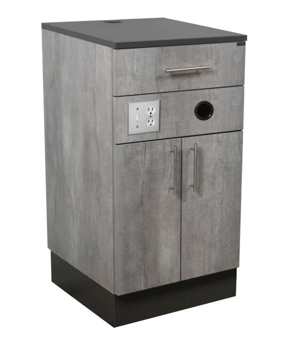 The Collins 6818-20 Lacarte Vacuum Cabinet is made 100% in the U.S.A and is designed to bring you the best quality in craftsmanship in the salon equipment industry. The vacuum cabinet, which conceals your salon vacuum system, also features a duplex outlet and switch mounted to the face of the cabinet with grommet for vacuum hose to pass through. The switch is wired to the interior mounted duplex, which is where you plug the vacuum into (*Wiring by a professional electrician onsite*) This unit also comes with a full width/full extension drawer for tools so you can maximize your storage. The Lacarte Vacuum Cabinet is available in over 40 laminate colors, ships fully assembled and comes with a 1- year warranty. * Vacuum or Mini Shop Vac is not included.*