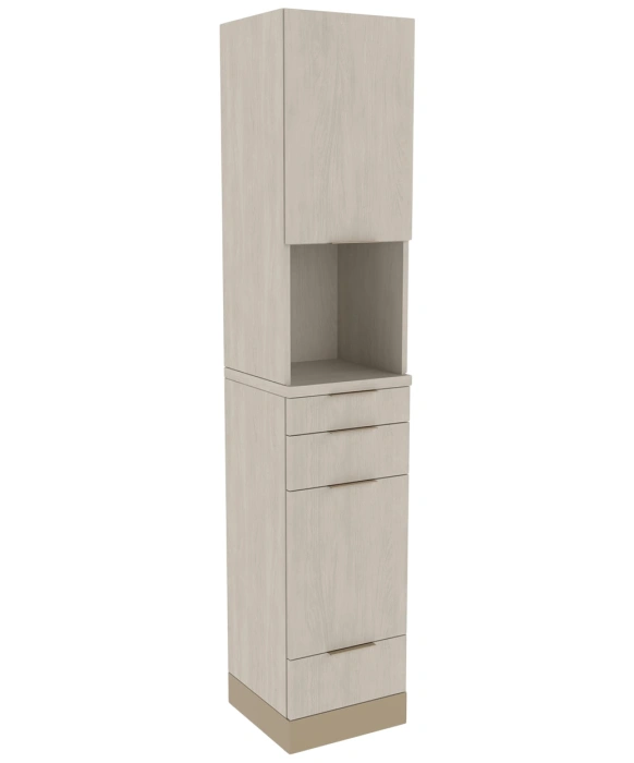 The Collins E1023P Nico Tower Styling Station with metal toe kick is made 100% in the U.S.A. and offers a clean, modern and functional design. This styling station features three full extension drawers, a fully equipped tip-out tool panel with built-in power strip, an upper storage cabinet and an open work space in the midsection which can be utilized for quick-use items or to display your salon’s retail products. The Nico Tower station can be completely customized to fit your particular design with a wide selection of popular laminates and 3 color options for the metal drawer pulls and metal toe kick. If you are looking for a tower styling station that will add functionality and a touch of timeless sophistication to your space, the Nico Tower Styling Station is the one for you! *Please allow 10 - 12 Weeks for shipment of special upcharge laminates.