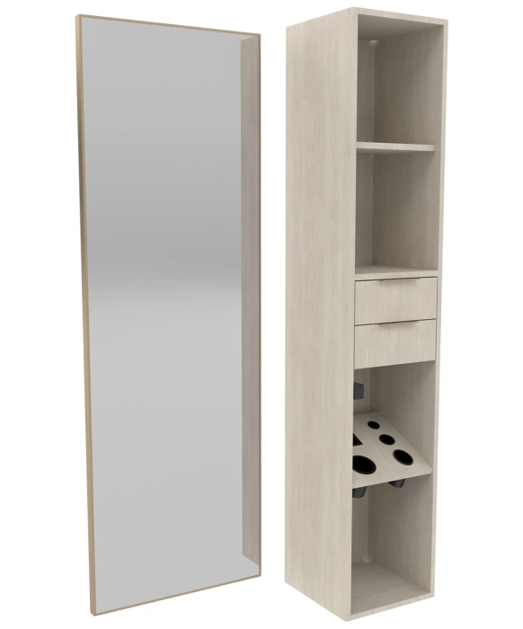 The Collins E1041 Essentials Formula Tower is made in the U.S.A. and is built with modern design and unmatched functionality at the forefront. The Essentials Formula Tower is a beautiful, fully functional station with extra storage options to keep your tools neatly organized and at your fingertips. This styling station features an easy access tool panel with built-in power strip, two full extension drawers, as well as upper and lower open storage areas that are extremely versatile. The Essentials Formula Tower is customizable in that it is available in over 50 popular laminate options and it will pair nicely with a wide selection of salon mirrors. This popular styling station is designed to be the perfect solution for all stylists and beauty professionals who want to keep it simple, yet stylish! *Please allow 10 - 12 Weeks for shipment of special upcharge laminates.