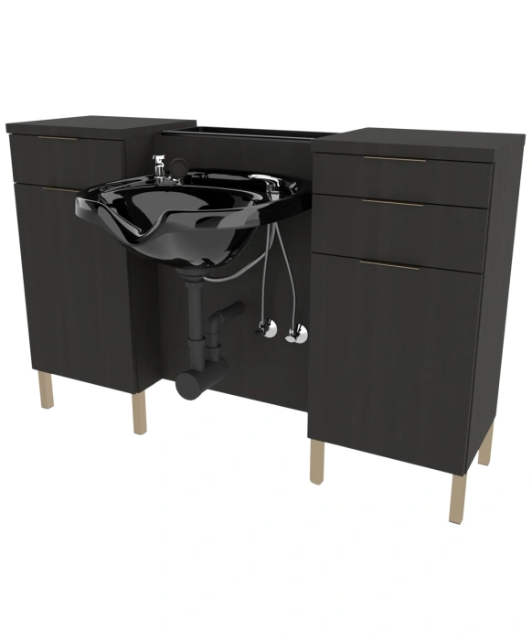 The Collins E1062P Aspen Wide Wet Station w/ Metal Legs is made 100% in the U.S.A. which guarantees exceptional quality that is unmatched in the salon industry. This stylish and functional station is free standing with metal legs and is a wider unit that offers more space for storage and organization, which makes it the perfect addition to any salon or barbershop. The Aspen Wide Wet Station w/ Metal Legs comes with three full extension drawers, a full extension tool panel drawer, top access molded bottle well, lower cabinet storage with adjustable shelf, and a convenient six-outlet power strip. This modern style wet station can be easily customized as it is available in a wide selection of popular laminate colors, 3 color options for metal drawer pulls and legs, and 2 color options for bowl (bowl sold separately). *Please allow 10 - 12 Weeks for shipment of special upcharge laminates. **Shampoo Bowl ordered separately