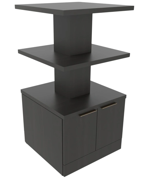 The Collins E1172 Nico Stacked Retail Display is made 100% in the U.S.A. providing great quality and durability unmatched in the salon equipment industry. The Nico Stacked Retail Display presents a small footprint making it perfect for compact spaces or it can be used for additional retail display for large areas. Highlight your products while keeping stock close at hand in the lower storage cabinet. Available in a large selection of popular laminates, the Nico Stacked Retail Display features a three-tiered display space with convenient access from all sides, a lower storage cabinet accessible on both sides and a finished toe-kick for a customized look. *Please allow 10 - 12 Weeks for shipment of special upcharge laminates.