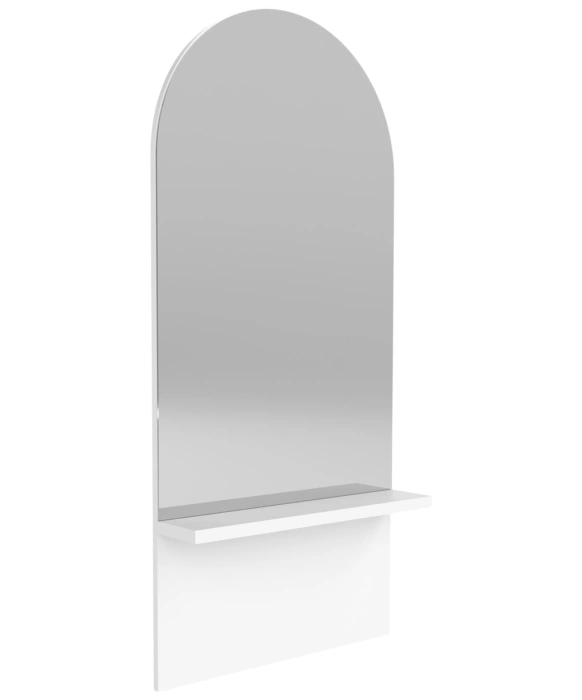 DescriptionThe Collins M02L Arched Shaped Mirror w/ Ledge is made 100% in the U.S.A. with pride by American craftsmen. This elegant mirror lends classic, timeless beauty to any salon or spa space. A generous 64” tall, this mirror adds visual height to your space and a “picture perfect” frame for you and your clients. The functional ledge accent, which keeps supplies close at hand or doubles as a retail display area, on the contemporary Collins MO2 Arched Shaped Mirror can be easily customized with a wide selection of popular laminates to match any free-standing vanity or styling station. *Please allow 10 - 12 Weeks for shipment of special upcharge laminates.