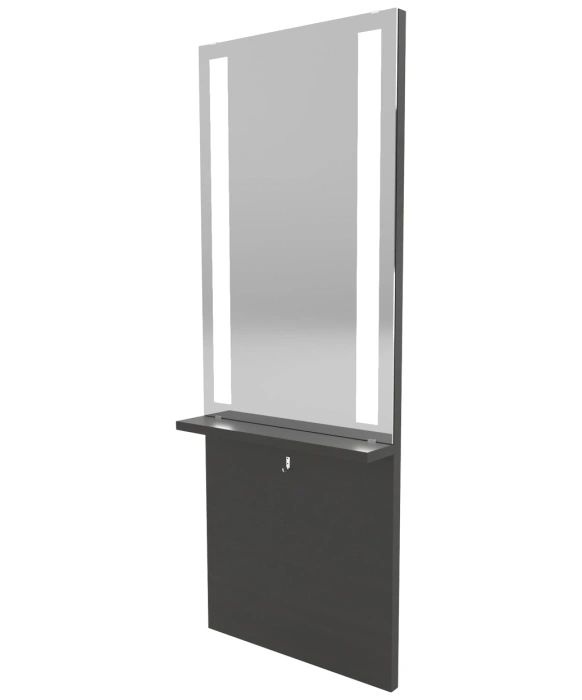 The Collins M06 Roots Salon Mirror w/ Ledge & Direct LED Lighting is made 100% in the U.S.A. Make a bold modern statement with this attractive multi-function setup. This wall mounted mirror with ledge comes in at 6.5 feet of pure perfection. Available in a wide selection of popular laminates, this mirror option features direct LED lighting, a ledge to keep your tools close or to display retail products and a convenient bag/purse hook for clients to keep their personal belongings off the floor and within reach. This mirror is both stylish as well as functional and adopts the newest trend in salon design as you can choose to order it with optional hard-wiring, or an outlet plug. *Please allow 10 - 12 Weeks for shipment of special upcharge laminates.