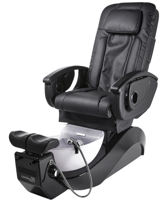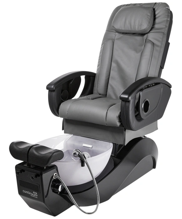 Sure to impress both your clients and your nail techs, the luxurious Continuum Le Reve Pedicure Chair provides the exceptional quality you’ve come to expect from Continuum, one of the beauty industry’s premier and trusted manufacturers. Assembled in the USA, this modern pedicure chair features a welded steel frame providing exceptional strength and durability, along with independently adjustable footrests, and an eye-catching pedicure bowl with the WhisperJet pipeless magnetic jet system. The tapered front of this pedicure spa will provide great ergonomics for your techs, while the fully electric adjustable chair will immerse your clients in superior comfort. Your client will also relax in comfort as this chair top features full Shiatsu Massage and a reclining backrest. This unit also comes standard with acetone resistant flip-up side trays, convenient swing up arm rests for easy chair access, and Continuum’s proprietary ventilation system. If you are looking for a quality, feature-rich pedicure spa with a sleek aesthetic that’s sure to elevate your salon or Day Spa, the Le Reve is the one for you!