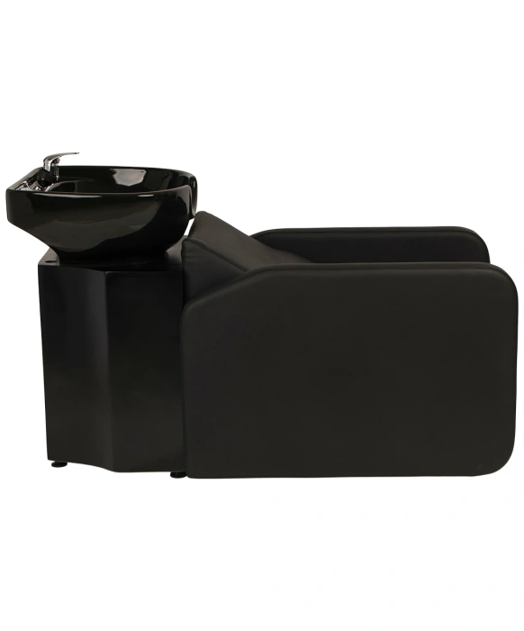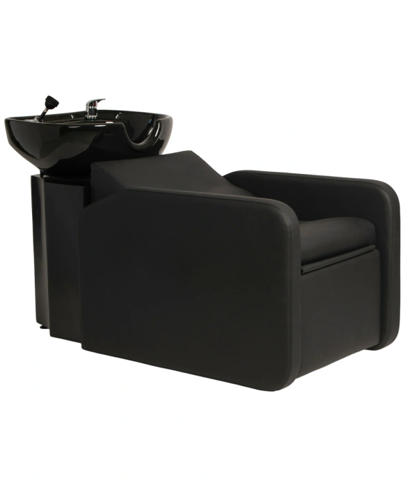 The Eclipse Backwash Unit is a professional lay-in style shampoo unit that combines simple elegance with superior comfort your clients are sure to love. This cutting-edge shampoo unit features an extra wide seat and a kick-out leg rest, which allows for an almost complete horizontal recline offering the most enjoyable and relaxing experience for your customer. The Eclipse Shampoo Backwash also features a durable vinyl seat with added lumbar support and a porcelain shampoo bowl with built-in headrest for added comfort and stability. The porcelain shampoo bowl is available in black or white and comes complete with all hardware including a single lever faucet, durable shampoo hose and nozzle, and a vacuum breaker. Your stylists and customers alike will love the elegant style and functionality of this shampoo unit, while also providing an unmatched level of comfort during traditional shampoo services as well as Head Spa services of any style. Additionally, we also offer the Eclipse Backwash Unit w/ Electric Legrest and many styling chairs like the Christina, Onyx or Lexus that pair very well!